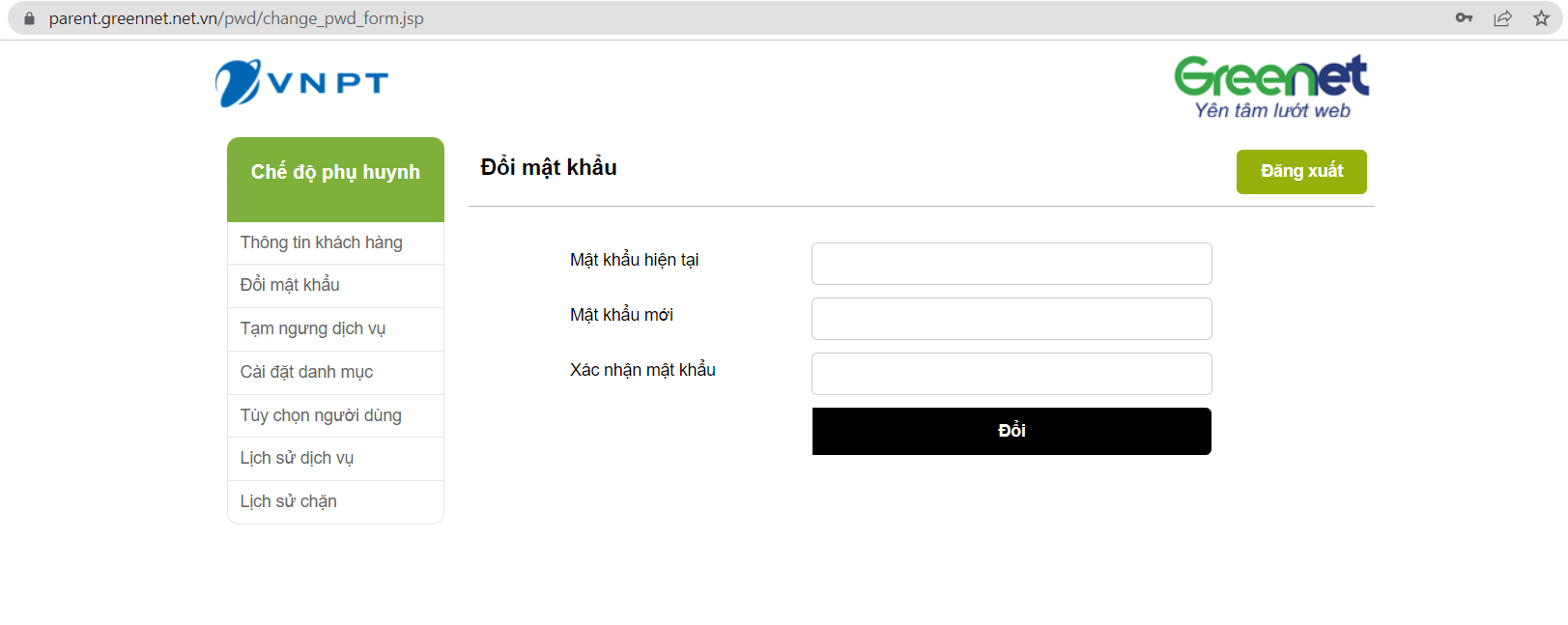 – Bấm Đổi để hệ thống thực hiện đổi và ghi nhận mật khẩu mới.