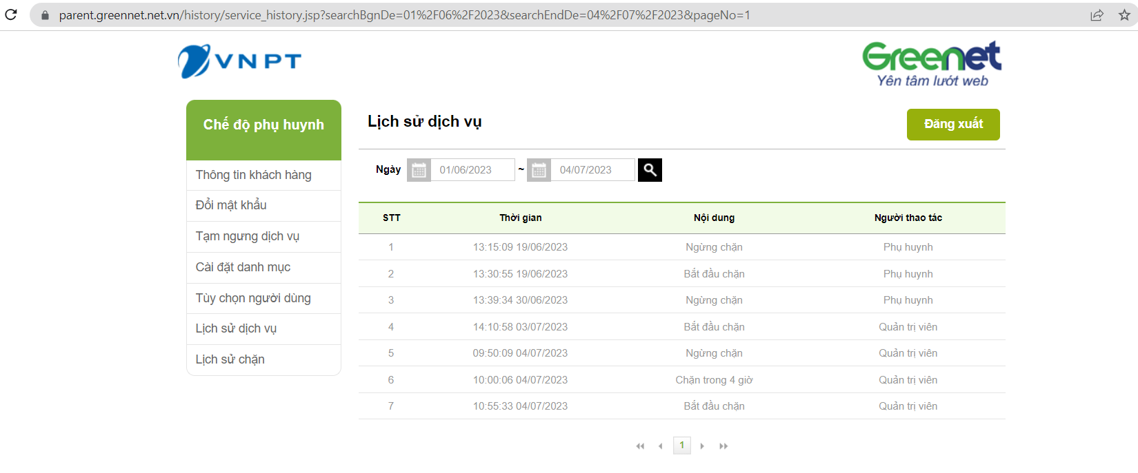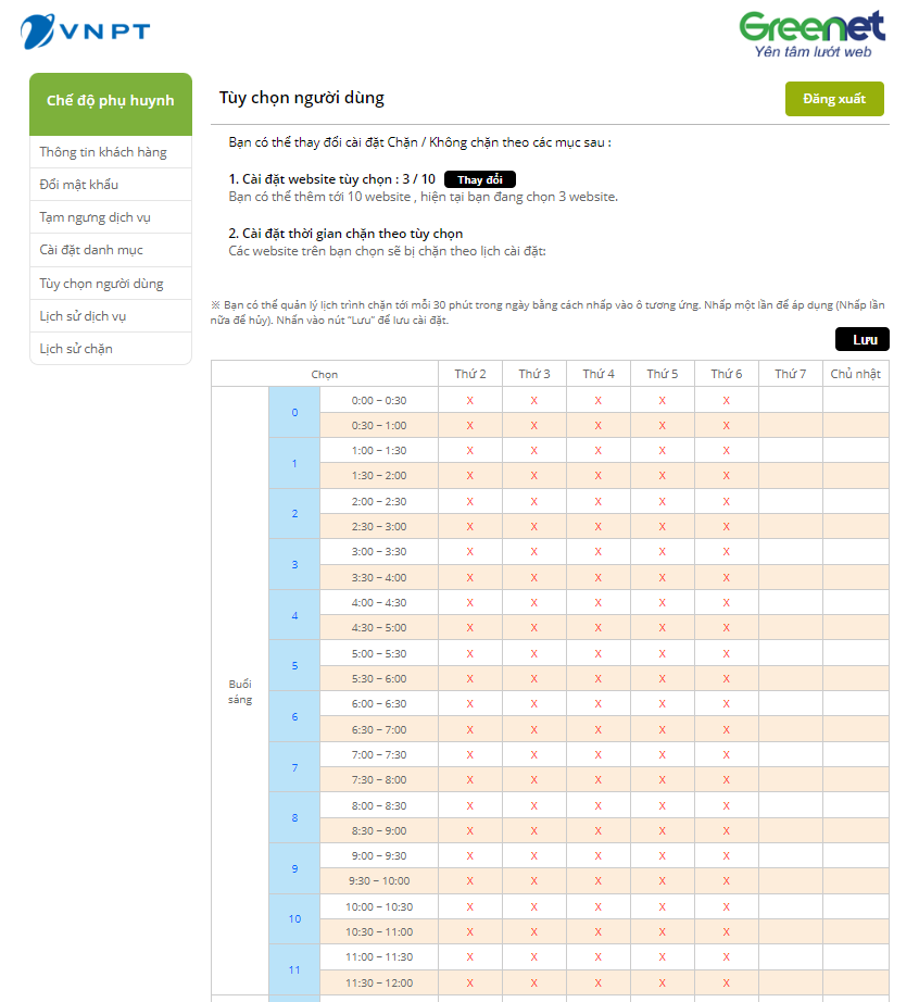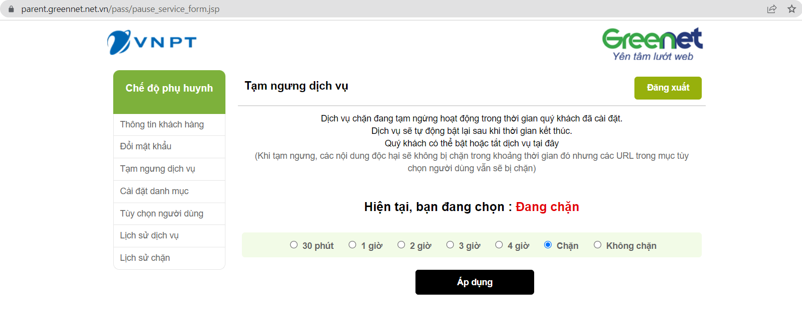 | 3 | On/off dịch vụ linh hoạt | Khách hàng có thể tắt, bật tính năng chặn website theo ý muốn trên trang CMS của khách hàng (https://parent.greennet.net.vn/login/login_form.jsp) |