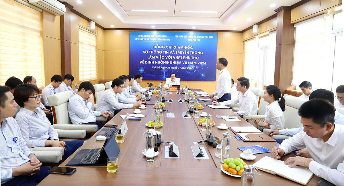 Ngày 28/11/2023, đồng chí Nguyễn Minh Tường – TUV, Giám đốc Sở Thông tin và Truyền thông, Phó Trưởng Ban Tuyên giáo Tỉnh ủy có buổi thăm, làm việc với VNPT Phú Thọ về định hướng nhiệm vụ năm 2024 và thời gian tiếp theo. Dự buổi làm việc có các đồng chí lãnh đạo Sở; lãnh đạo VNPT Phú Thọ; lãnh đạo các phòng chuyên môn, đơn vị thuộc Sở và VNPT Phú Thọ.