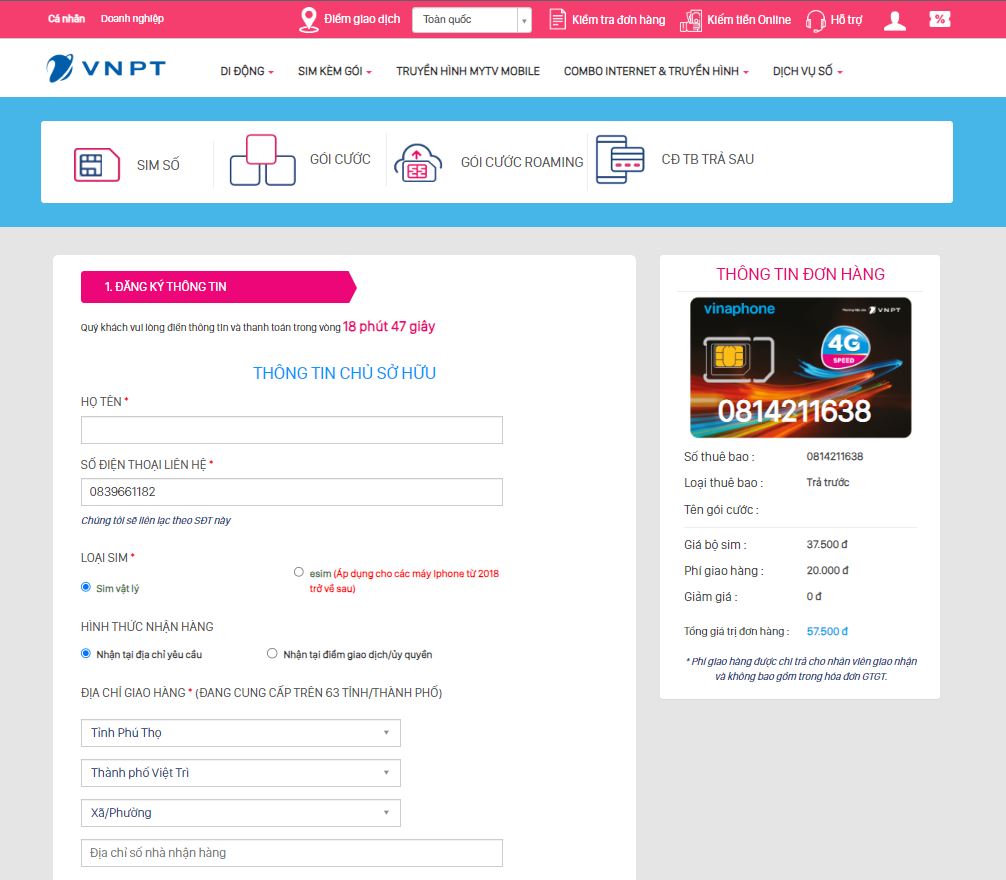 Hướng dẫn đặt mua Sim kèm 3 gói cước data thoại ưu đãi nhất trên: shop.vnpt.vn
