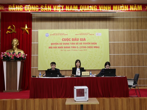 Bà Lê Việt Nga, đấu giá viên Công ty đấu giá hợp danh số 5 Quốc gia điều hành cuộc đấu giá đã phổ biến các quy định và giải đáp, hướng dẫn thực hiện việc đấu giá. Sau 17 vòng đấu, doanh nghiệp có mã số 002 là Tập đoàn Bưu chính Viễn thông Việt Nam (VNPT) đã trúng đấu giá quyền sử dụng tần số vô tuyến điện đối với khối băng tần C2 (3700 MHz – 3800 MHz).